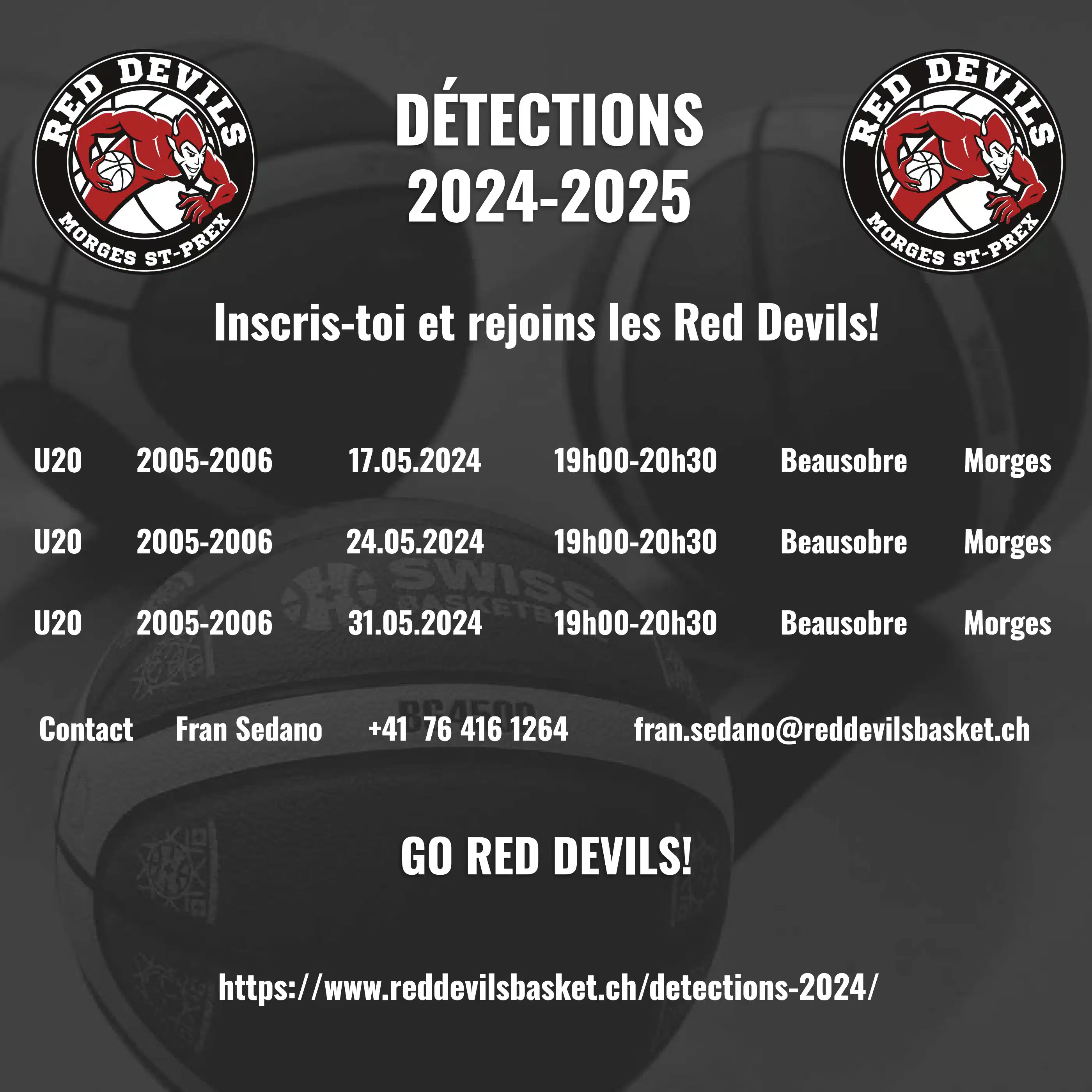 Formulaire d’inscription en ligne > reddevilsbasket.ch/detections-2024