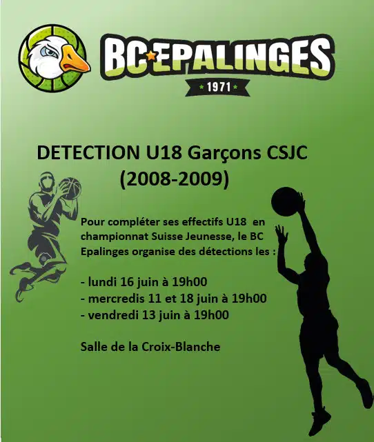 Des détections U18 garçons CSJC sont organisées par le Basket Club Epalinges :